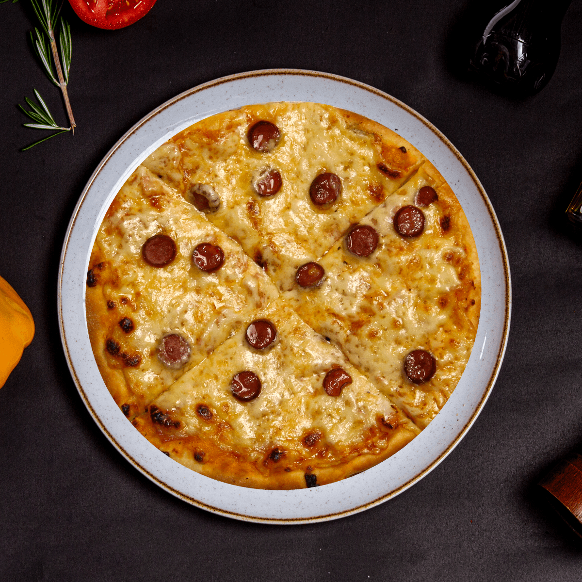 Pizza con queso jamón y cabano con salsa napolitana de la casa