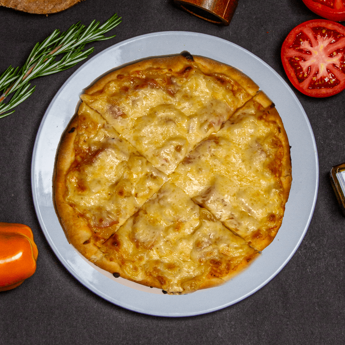 Pizza con jamón especial, salsa napolitana y queso.